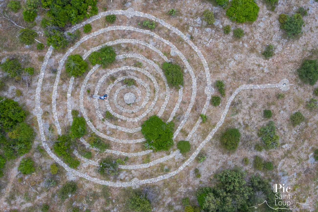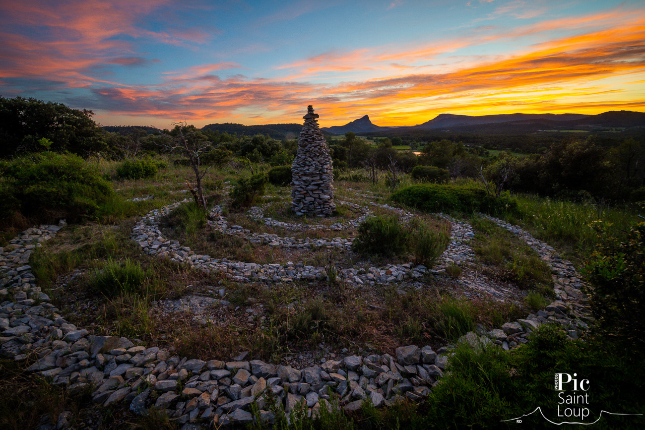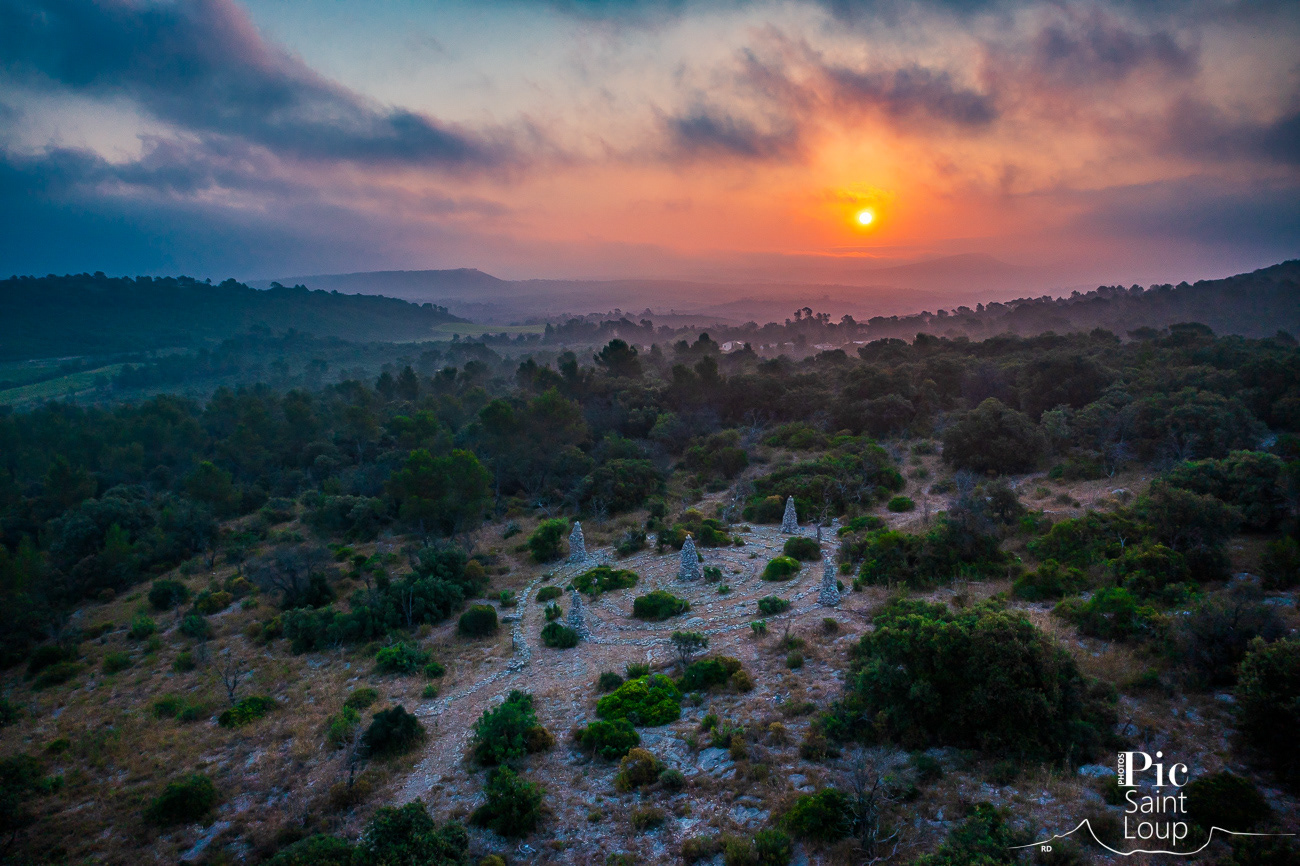 L'emplacement a été choisi complètement par hasard, mais je me suis aperçu que son centre passait par une ligne Est-Ouest qui passe également par le Pic Saint-Loup...