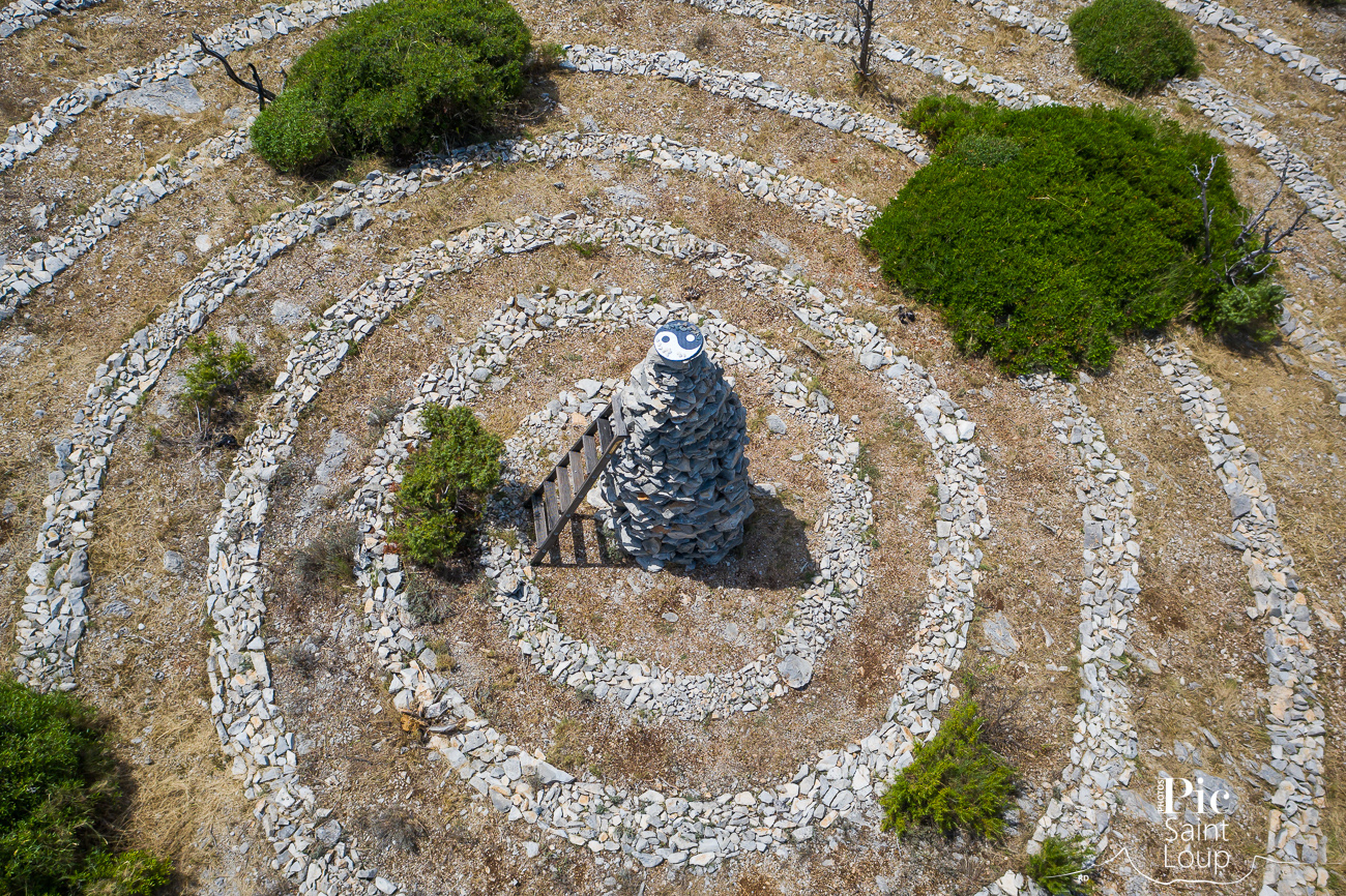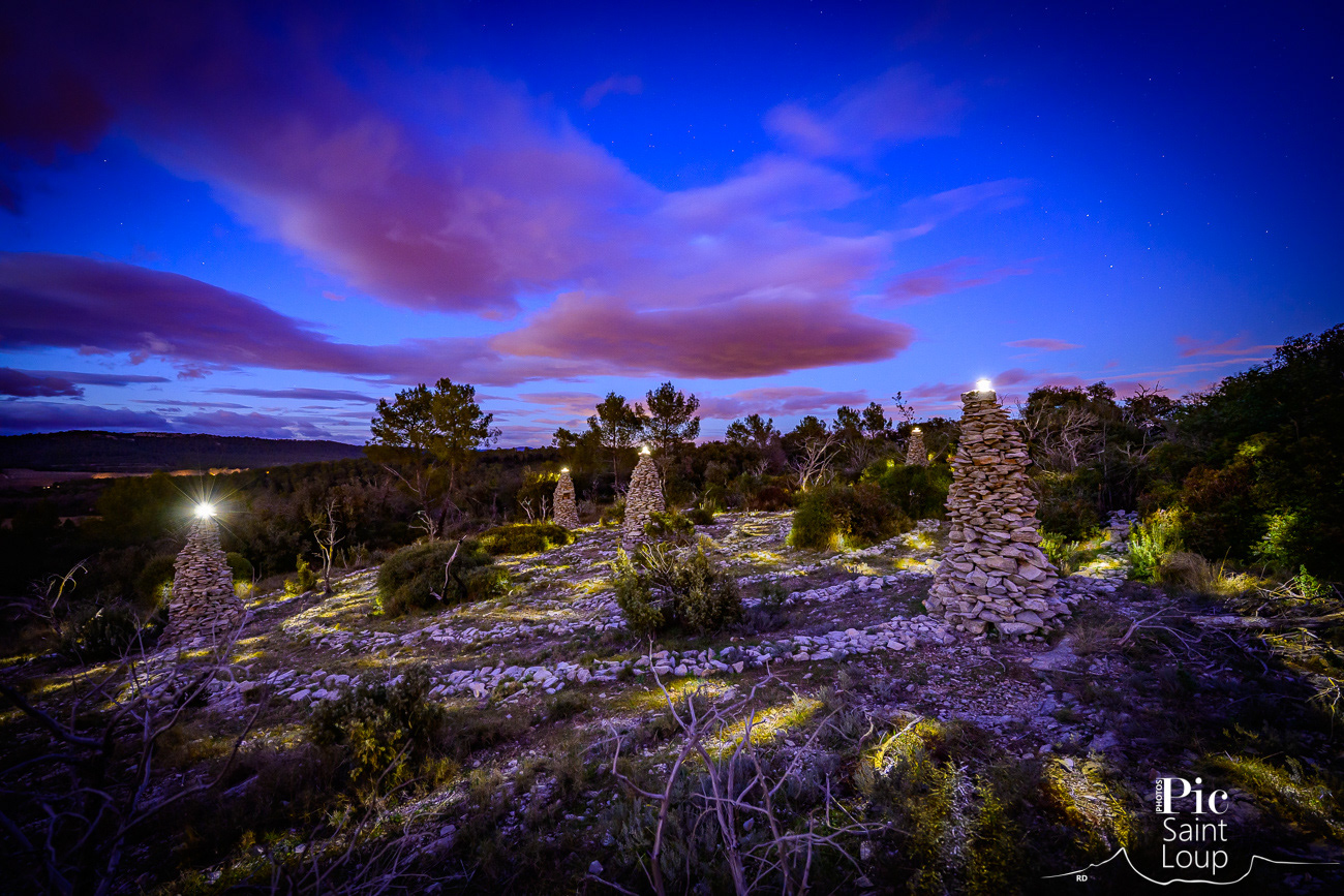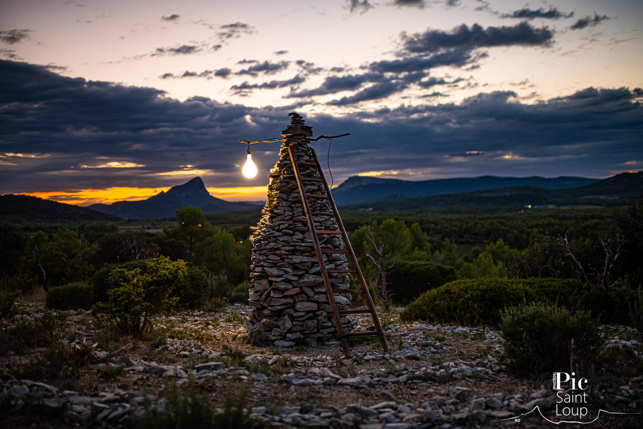 L'emplacement a été choisi complètement par hasard, mais je me suis aperçu que son centre passait par une ligne Est-Ouest qui passe également par le Pic Saint-Loup...